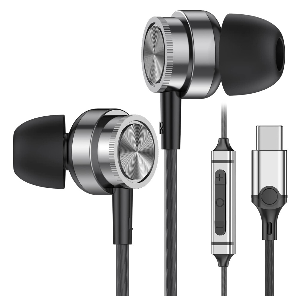 Bolle&Raven Thore USB C Headphones with Mic (V100) In Ear Wired Earphones with Microphone/Remote Ear Buds for Galaxy S20/ S21/ S22/ Plus/Ultra,