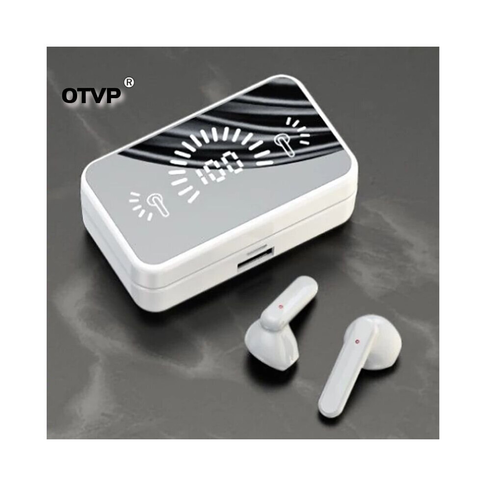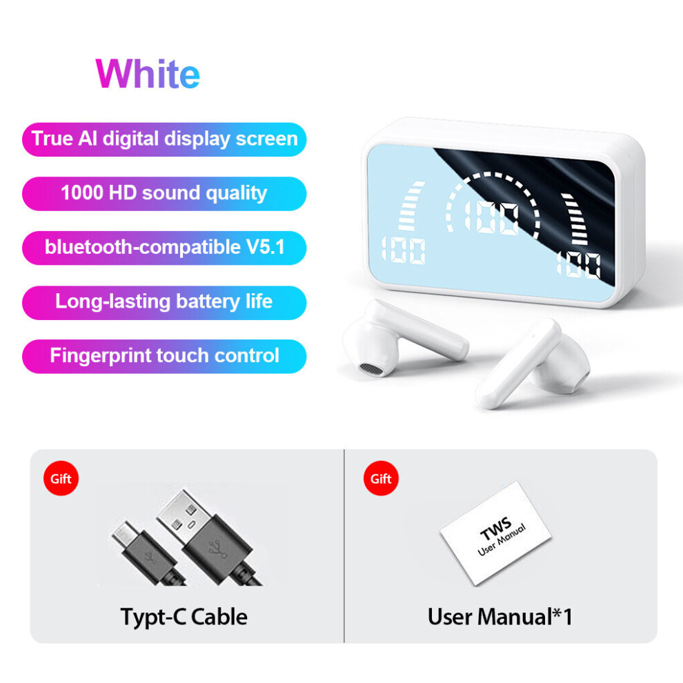 (a-White) S20 Mirror Earphone Bluetooth-compatible Wireless Headphones With Mic Touch LED Stereo Audio Earbuds Headphone Sport Waterproof