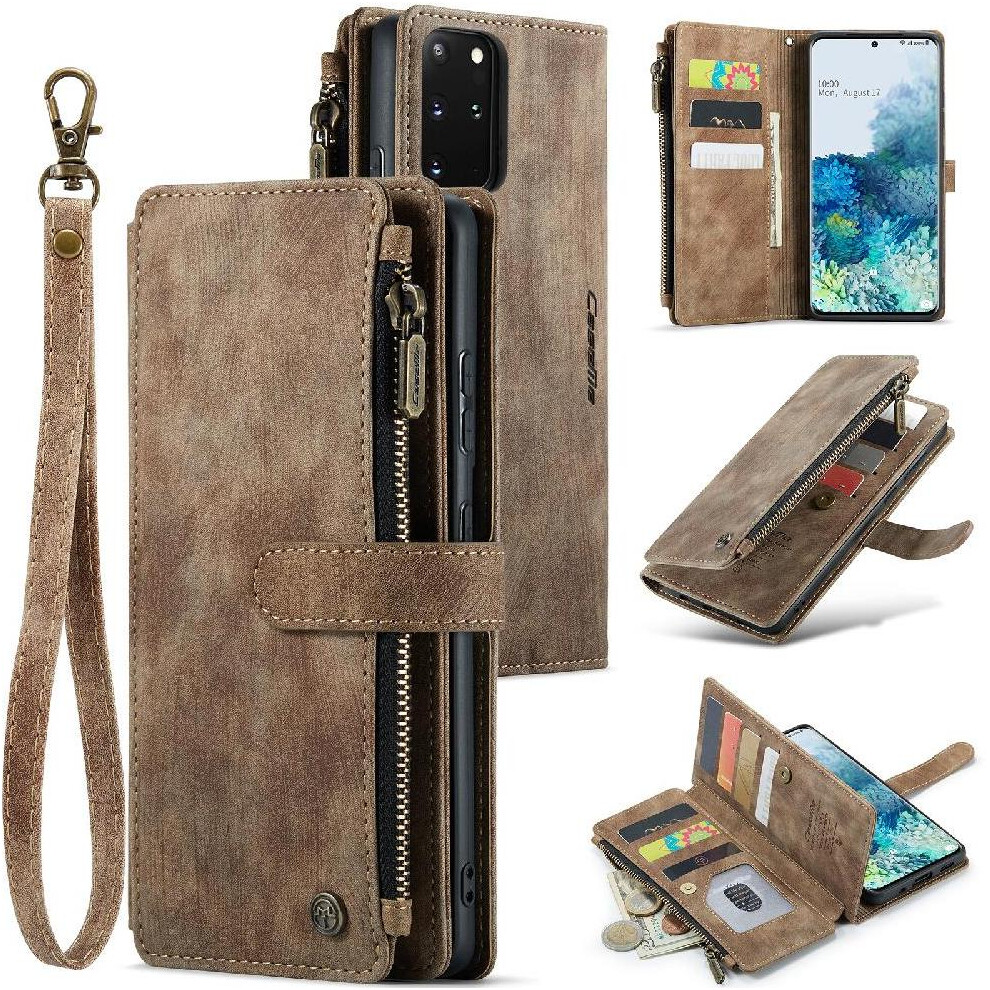 (Brown) For Samsung S20 Plus 5G Wallet Case PU Leather Wallet Flip Phone Case