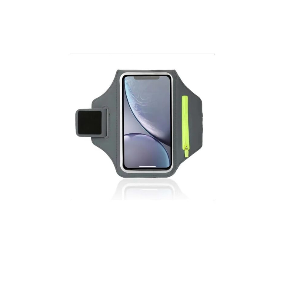 Running Armband with Bag for AirPods for iPhone 15 14 13 Pro 14 Plus XR XS Galaxy S20 S10 Water Resistant 6.5 Inch Grey