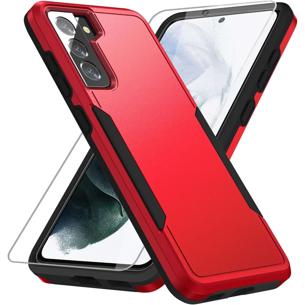 Galaxy S21 FE 5G Case, compatible with Samsung S21 FE, Screen Protector Included - Military Grade Shockproof Rugged Protective Case, Red