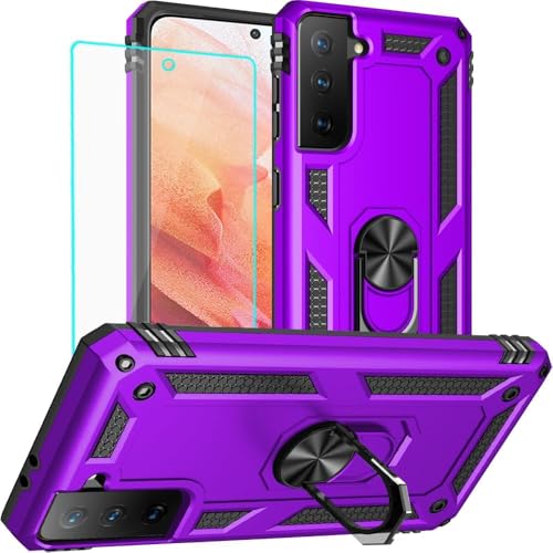 for Samsung S21 Case with Screen Protector: Military Grade Protective Cases with Ring for— Samsung Galaxy S21 (Purple)