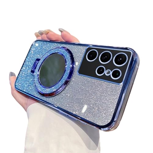 IMEIKONST Case for Samsung Galaxy S23 Ultra, Glitter Shining Cover with Makeup Mirror Bracket Stand Fuction, TPU Shockproof Drop Protective Anti-Scratch Bumper Case for Samsung S23 Ultra. Blue DSJ