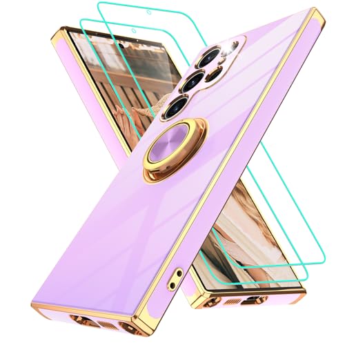 Gritup Slim Fit Case for Samsung Galaxy S23 Ultra,Shockproof Soft Cover with 2 Pcs HD Screen Protectors,and Built-in Ring Kickstand Phone Cover,S23 Ultra-Purple