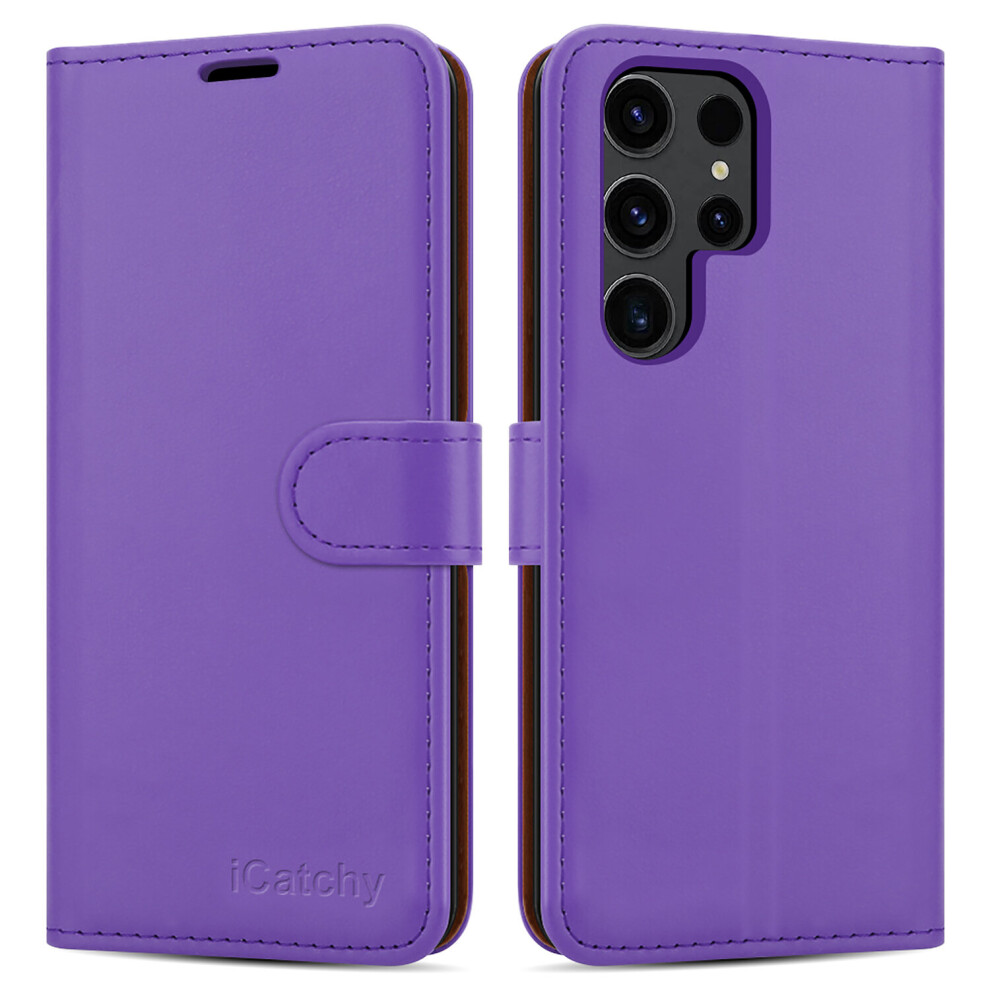 (Purple) Flip Case for Samsung Galaxy S23 Ultra Flip Cover Shockproof Simple Business Leather Case Wallet