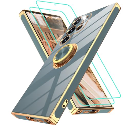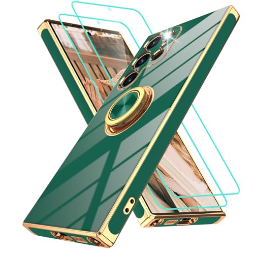 Gritup Slim Fit Case for Samsung Galaxy S23 Ultra,Shockproof Soft Cover with 2 Pcs HD Screen Protectors,and Built-in Ring Kickstand Phone Cover,S23 Ultra-Dark Green