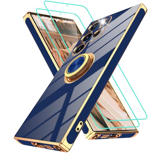 Gritup Slim Fit Case for Samsung Galaxy S23 Ultra,Shockproof Soft Cover with 2 Pcs HD Screen Protectors,and Built-in Ring Kickstand Phone Cover,S23 Ultra-Navy Blue