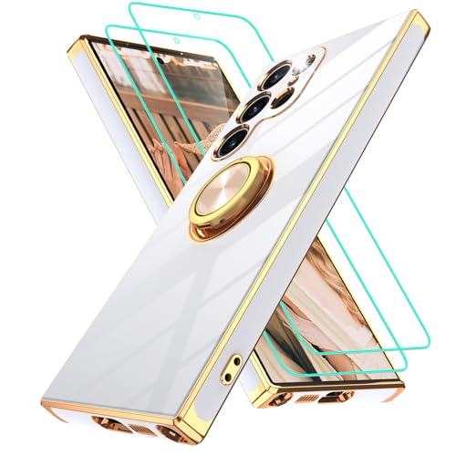 Gritup Slim Fit Case for Samsung Galaxy S23 Ultra,Shockproof Soft Cover with 2 Pcs HD Screen Protectors,and Built-in Ring Kickstand Phone Cover,S23 Ultra-White