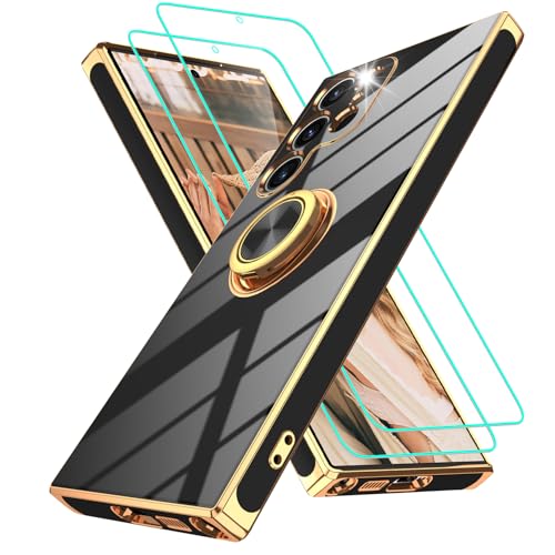 Gritup Slim Fit Case for Samsung Galaxy S23 Ultra,Shockproof Soft Cover with 2 Pcs HD Screen Protectors,and Built-in Ring Kickstand Phone Cover,S23 Ultra-Black