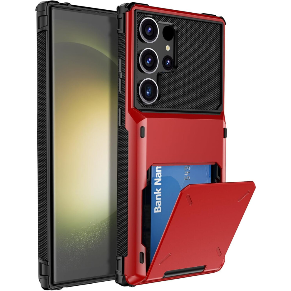 Red Galaxy S23 Ultra Flip Cover Case with Hidden Card Slot, Dual-Layer Shockproof Protection â Compatible with Samsung Galaxy S23 Ultra 5G (6.8",