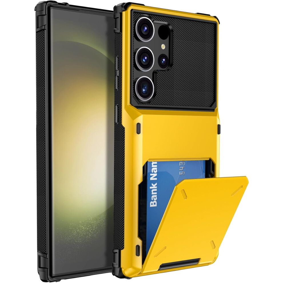 Nokverzy Wallet Phone Case for Samsung S23 Ultra Cover,Lychee Pattern,Magnetic Closure Flap Pocket Wallet,Stand Function Case for Samsung Galaxy S23 Ultra Mobile Soft Shockproof Case -Yellow