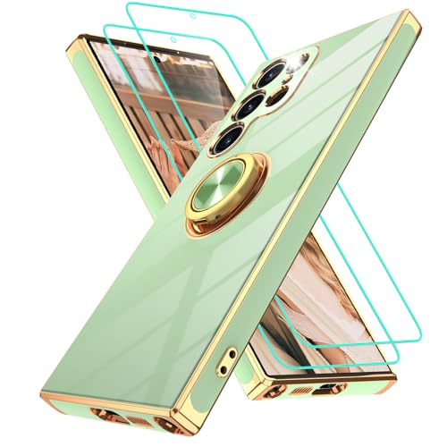 Gritup Slim Fit Case for Samsung Galaxy S23 Ultra,Shockproof Soft Cover with 2 Pcs HD Screen Protectors,and Built-in Ring Kickstand Phone Cover,S23 Ultra-Pea Green