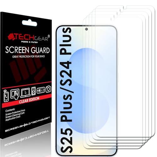 TECHGEAR Screen Protectors [5 Pack] for Samsung Galaxy S24 Plus & S25 Plus 5G, CLEAR FILM LCD Screen Protectors Cover Guards