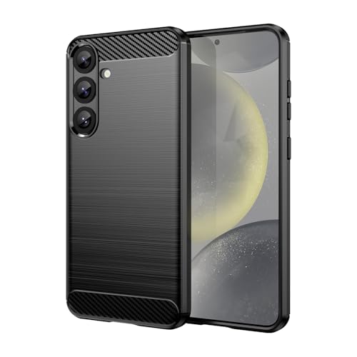 SCL Case for Samsung Galaxy S25 Plus - Anti-Slip Brushed Texture with Carbon Fiber Design, Shockproof Protective Soft TPU Cover for Samsung S25 Plus - Black