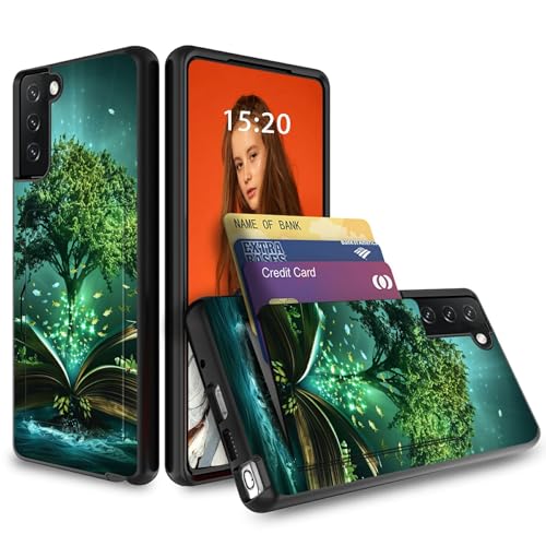 Dikoer for Samsung Galaxy S25 Plus/Galaxy S24 Plus 6.7" Wallet Case[Store 3 Cards], Heavy Duty Credit Card Holder ID Slot Hard PC Shockproof Silicone Protection Dual Layer Cases, Green Tree
