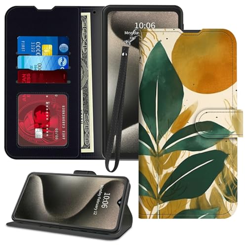 for Samsung Galaxy S25 Plus Wallet Case 6.7" 2025 with Credit Card Holder PU Leather Magnetic [RFID Blocking] Flip Kickstand Card Slots Wrist Strap Phone Case for Galaxy S25+ Plus 5G,Abstract Sun Leaf