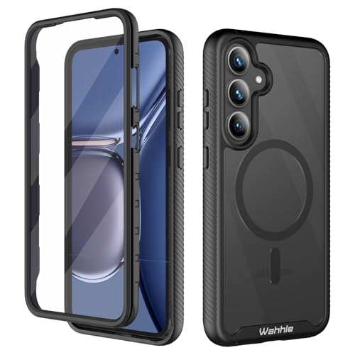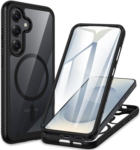 wahhle Compatible with Samsung Galaxy S25+ Plus Case, Magnetic Wireless Charging Built in Screen Protector Full Body Shockproof Slim Fit Bumper Protective Phone Cover for S25 Plus -Black/Clear