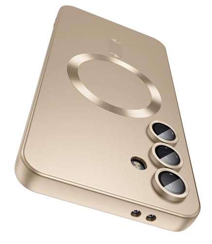 LEKEVO Magnetic for Samsung Galaxy S25 Plus Case [Compatible with MagSafe][Built-in Camera Lens Protector] Slim Soft Silicone Bumper Shockproof Metallic Luster Phone Shell (Gold)