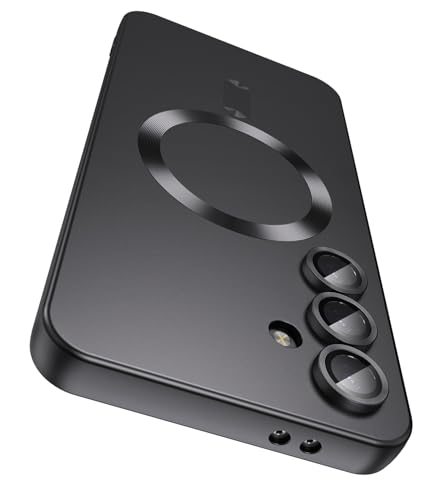 LEKEVO Magnetic for Samsung Galaxy S25 Plus Case [Compatible with MagSafe][Built-in Camera Lens Protector] Slim Soft Silicone Bumper Shockproof Metallic Luster Phone Shell (Black)