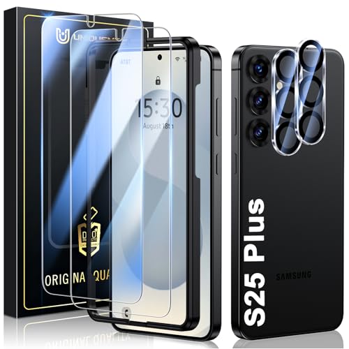 UniqueMe for Samsung Galaxy S25 Plus/S25+ Screen Protector - 2+2 Pack Tempered Glass and Camera Lens Protector [Support Fingerprint] Anti Scratch HD Clear Protective Film with Lens Cover - 6.7 Inch