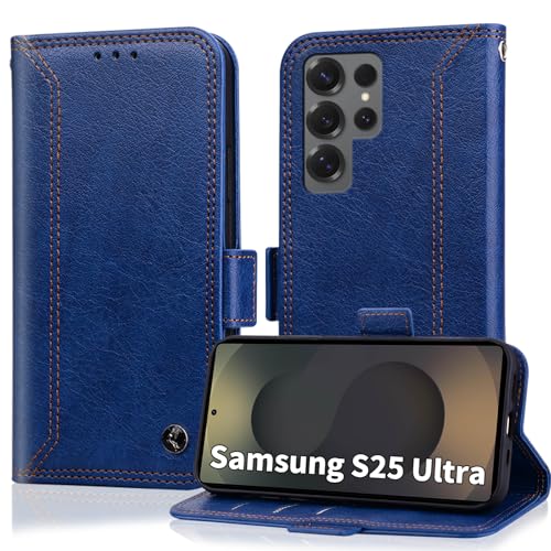 for Samsung S25 Ultra Case Wallet with RIFD Blocking Card Holder PU Leather Flip Kickstand Business Cover with Magnetic Closure Phone Case for Samsung Galaxy S25 Ultra 6.9 Inch 2025, Dark Blue
