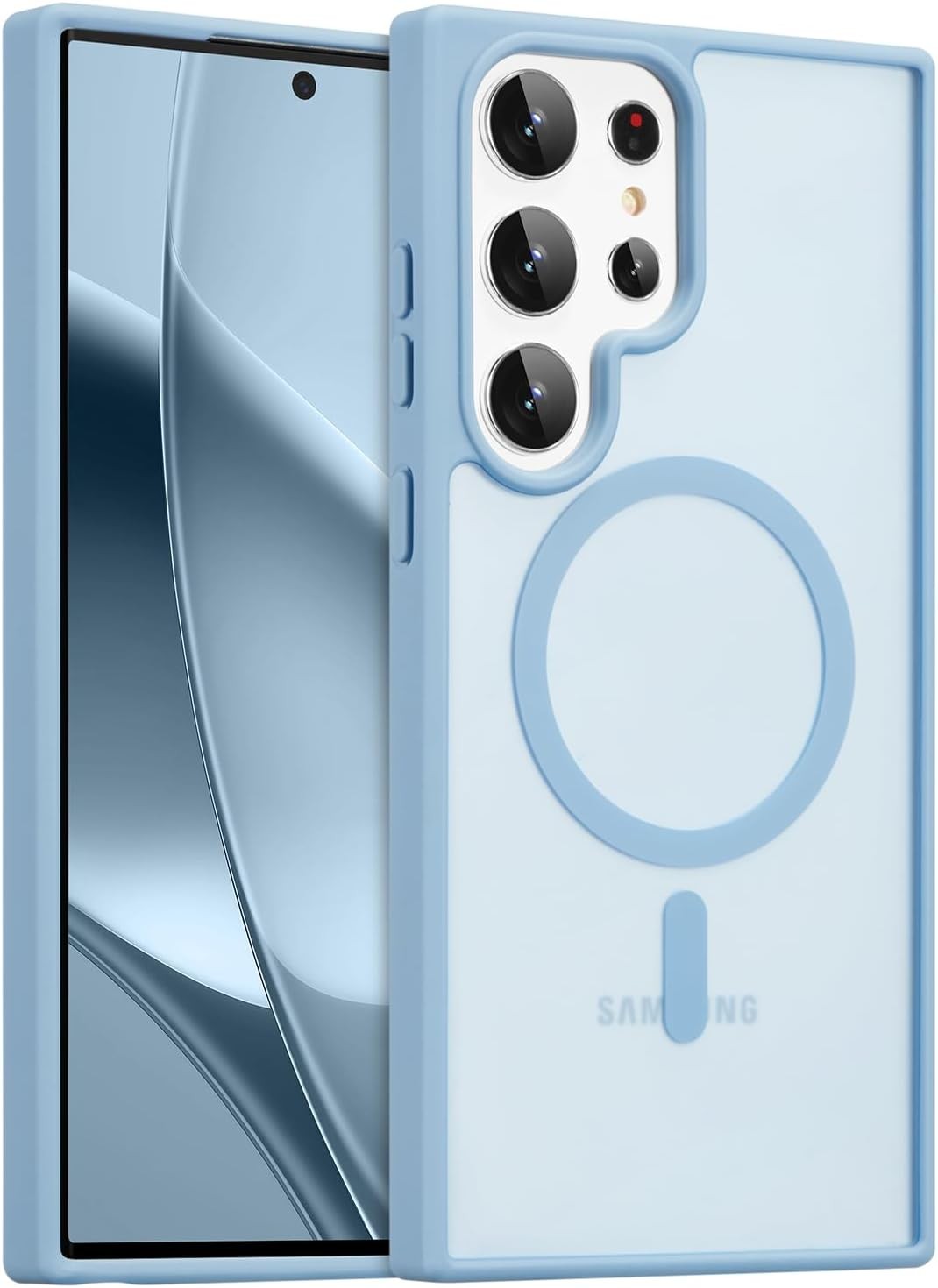MAKAVO Matte for Samsung Galaxy S25 Ultra Case, Compatible with MagSafe, Slim Thin Magnetic Cover with Built-in Camera Lens Protector (Removable) Shockproof Phone Shell, Blue