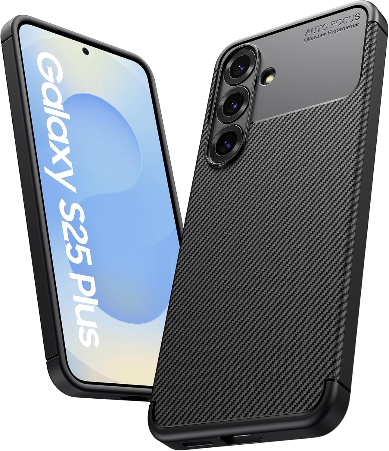 SCL Case for Samsung Galaxy S25 Plus - Anti-Slip Brushed Texture with Carbon Fiber Design, Shockproof Protective Soft TPU Cover for Samsung S25 Plus - Black