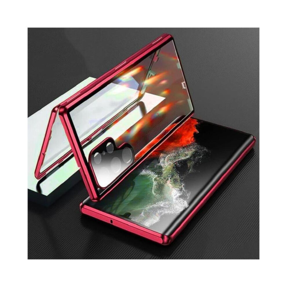 (Red, Galaxy S25PLUS ) Transparent Metal Frame with 360 Degree Full Screen Coverage, Built-In HD Tempered Glass for Galaxy S25ultra S24ultra S23ultra