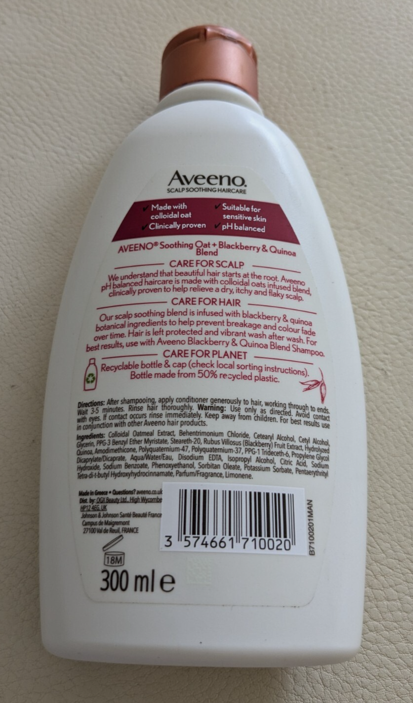 Aveeno Scalp Soothing Haircare Colour Protect Conditioner, Blackberry & Quinoa Blend, for Colour Treated Hair, Soothes Dry, Itchy & Flaky Scalp, Clinically Proven, Sulfate Free, 300ml
