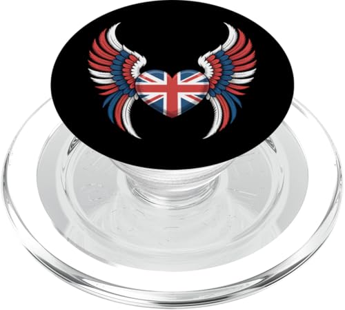 Great Britain Flag Heart with Angel Wings for UK Pride PopSockets PopGrip for MagSafe