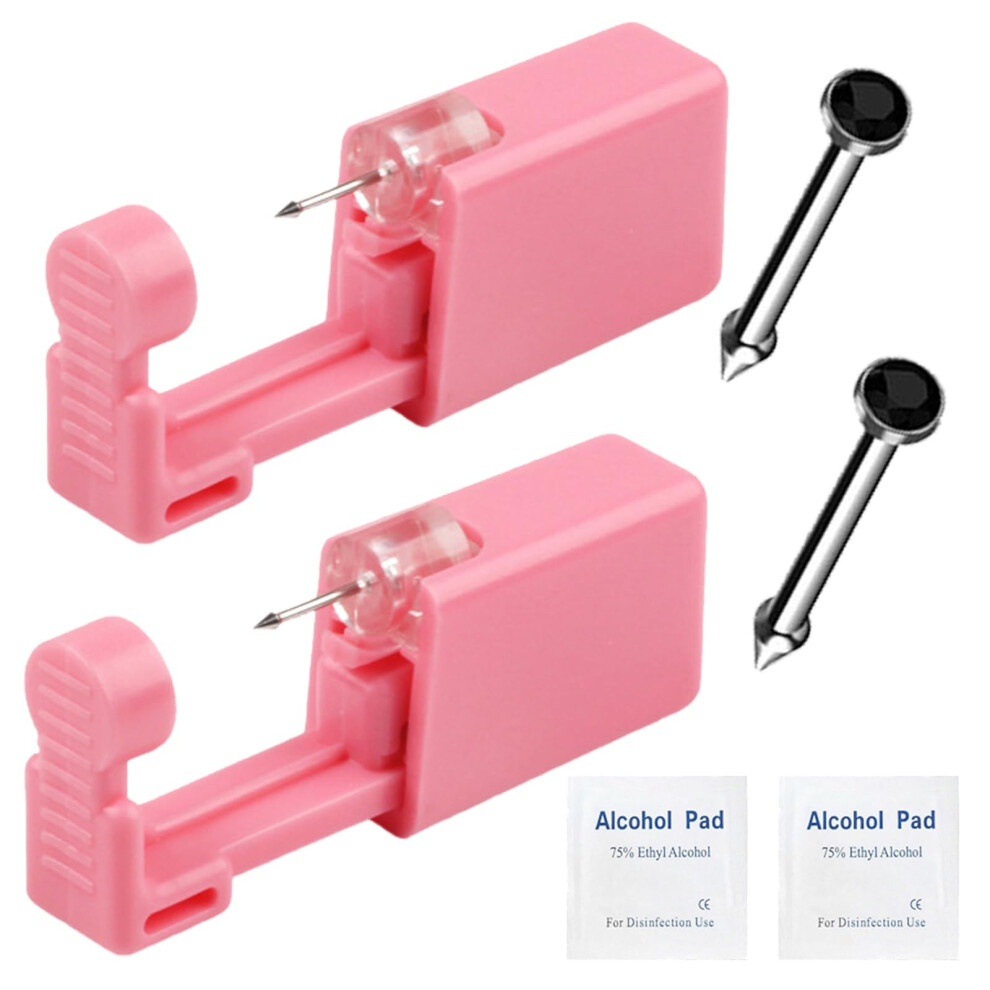 Nose Piercing Kit with 2 Disposable Piercing Guns and Surgical Steel Studs for Safe At Home Use