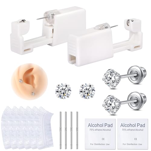 AVYRING 14Pcs Disposable Ear Piercing Kit with 4MM Cubic Zirconia Studs - Complete Set for Safe and Easy At-Home Ear Piercing, 316L Surgical Stainless Steel Piercing Gun Kit for Women Man