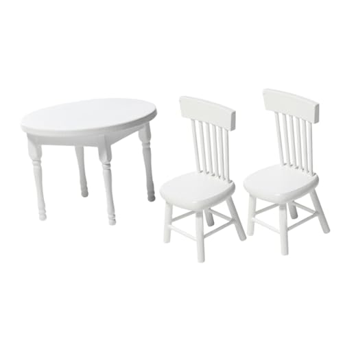 FRCOLOR Miniature White Wooden Dollhouses Table Chair Doll Furniture Smooth Surface Safe for Doll House Decor Accessories