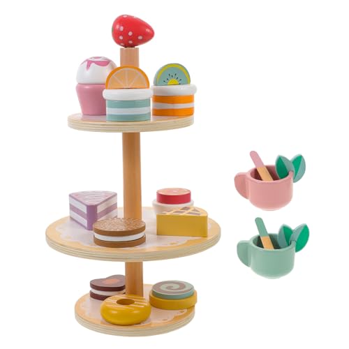 FRCOLOR Miniature Wooden Play Cake Set for Simulation Cupcake and Dessert Role Play Accessories for Preschool Pretend House Safe and Decorative Cake Props