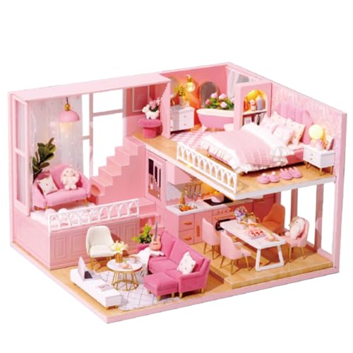 Gatuida Creative DIY Mini Apartment Manual Assemble Small Wooden Cottage for Safe Portable Play House Encourages Imaginative Role Activity and Home Decoration