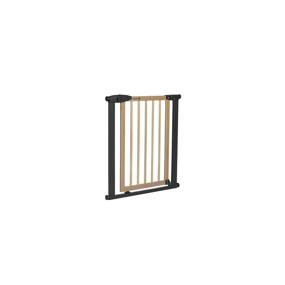 Safety 1st Simply Close Wood and Metal, Baby Stair Gate Pressure Fit, 73–80cm (max. 94cm), No-Screw Installation (No Drilling), One-Hand Opening, Double Lock System, Baby Safety Gate, Wood & Graphite