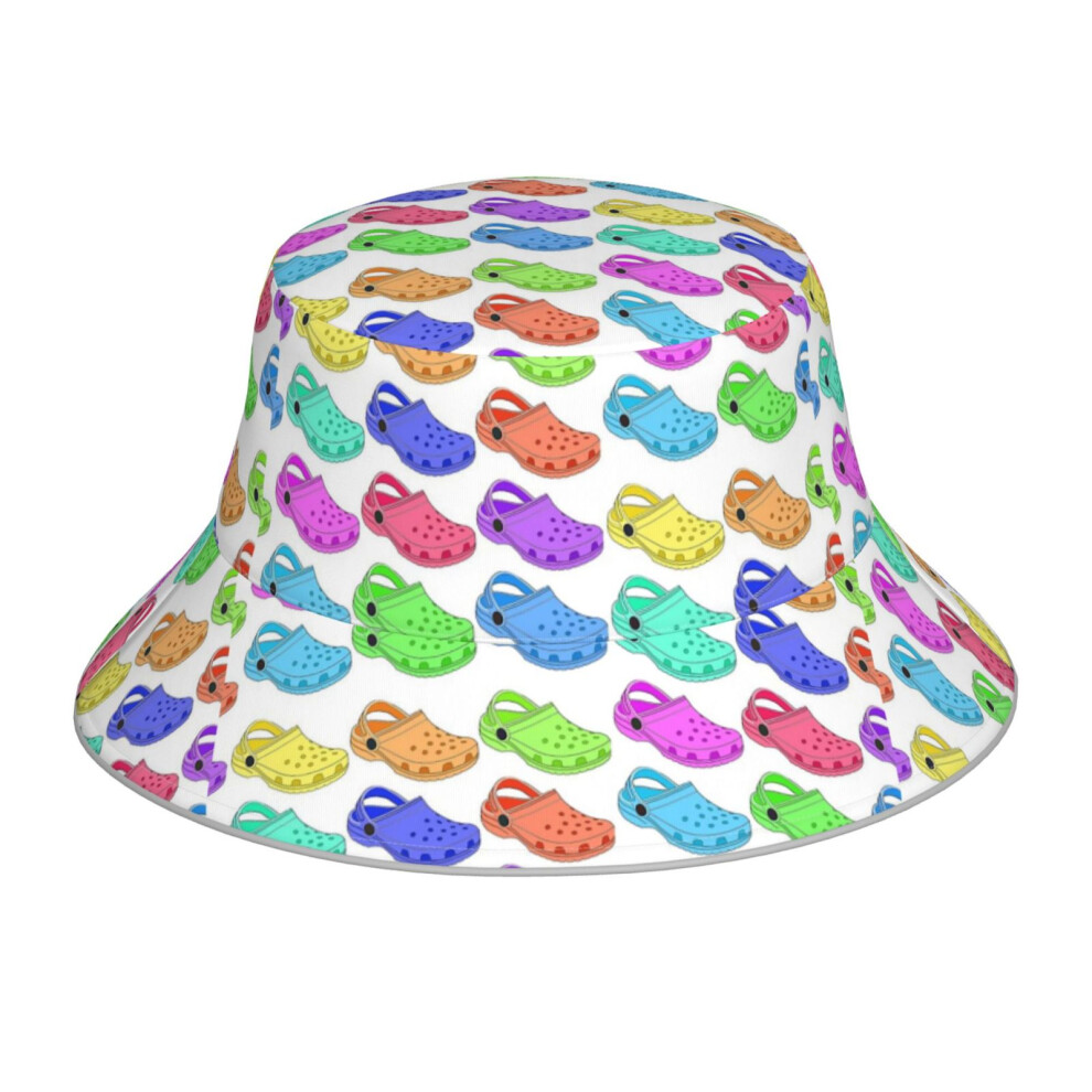 (Crocs Collage_8219) Bucket Hat Reversible Reflective for Men Women - UV50+ Sun Protection Double-Sided Fishing Hat with 360 Safety Strips Summer Outd