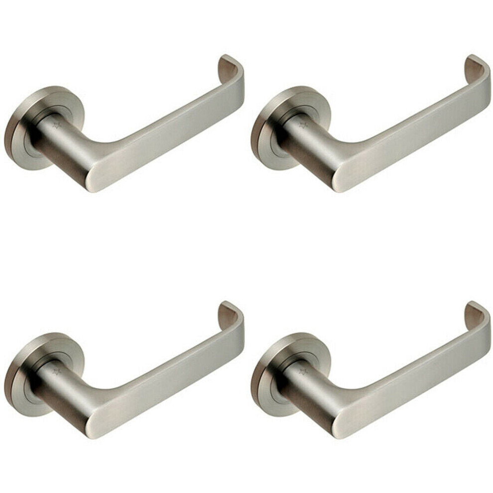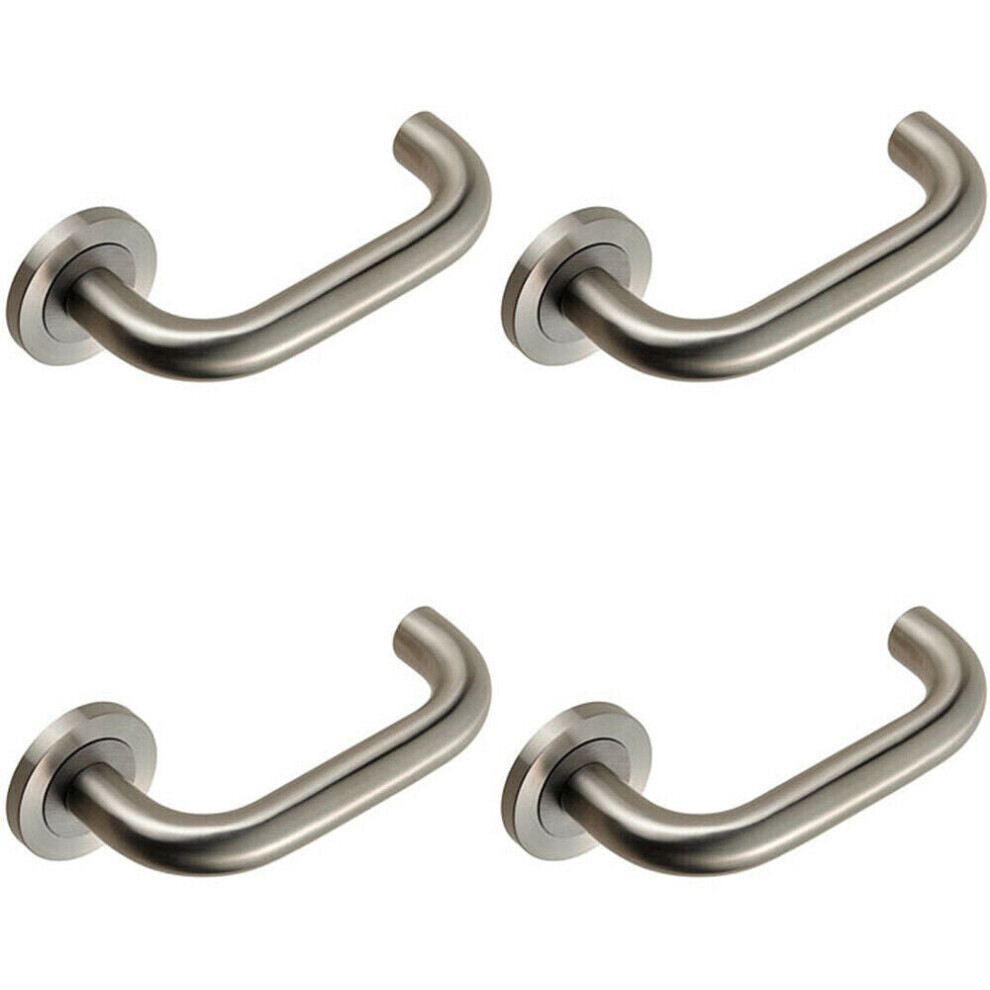 4x PAIR Straight Bold Faced Safety Handle Concealed Fix Round Rose Satin Steel