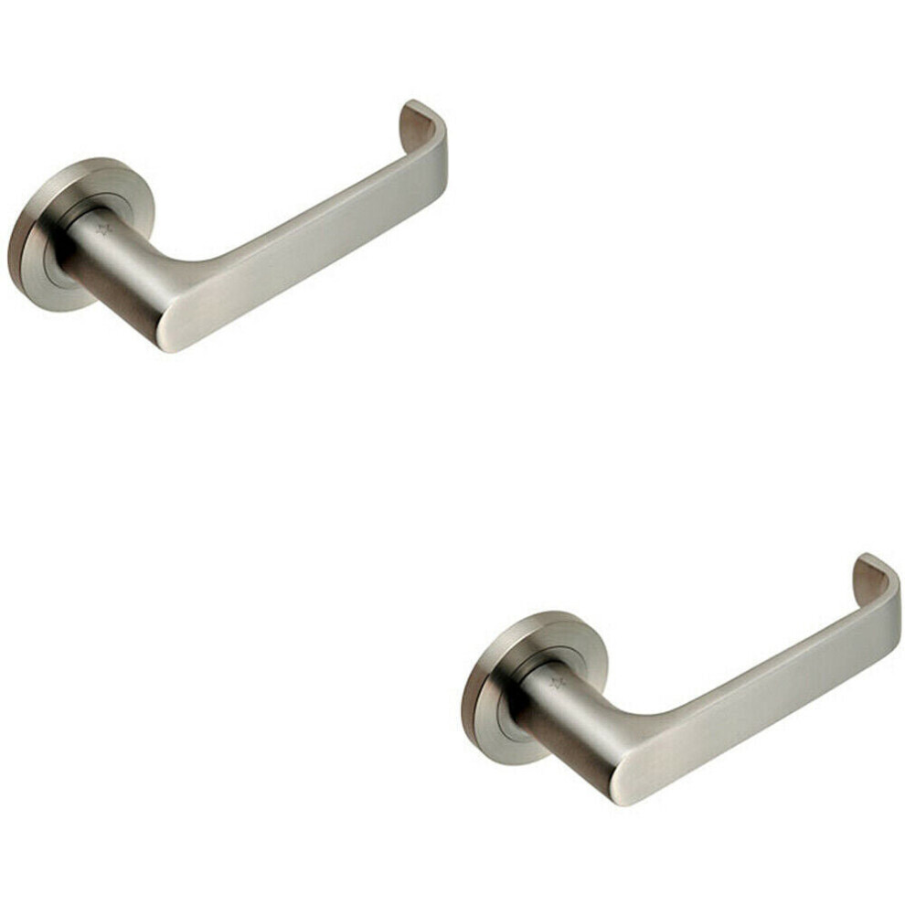 2x PAIR Straight Bold Faced Safety Handle Concealed Fix Round Rose Satin Steel