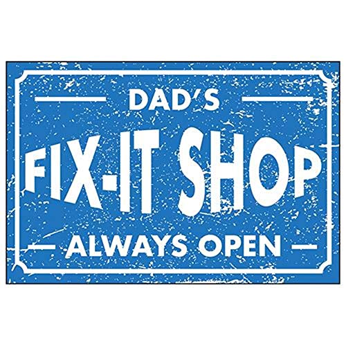 V Safety Rough Blue/Dad's Fix - It Shop/Always Open Sign - 300mm x 200mm - Self Adhesive
