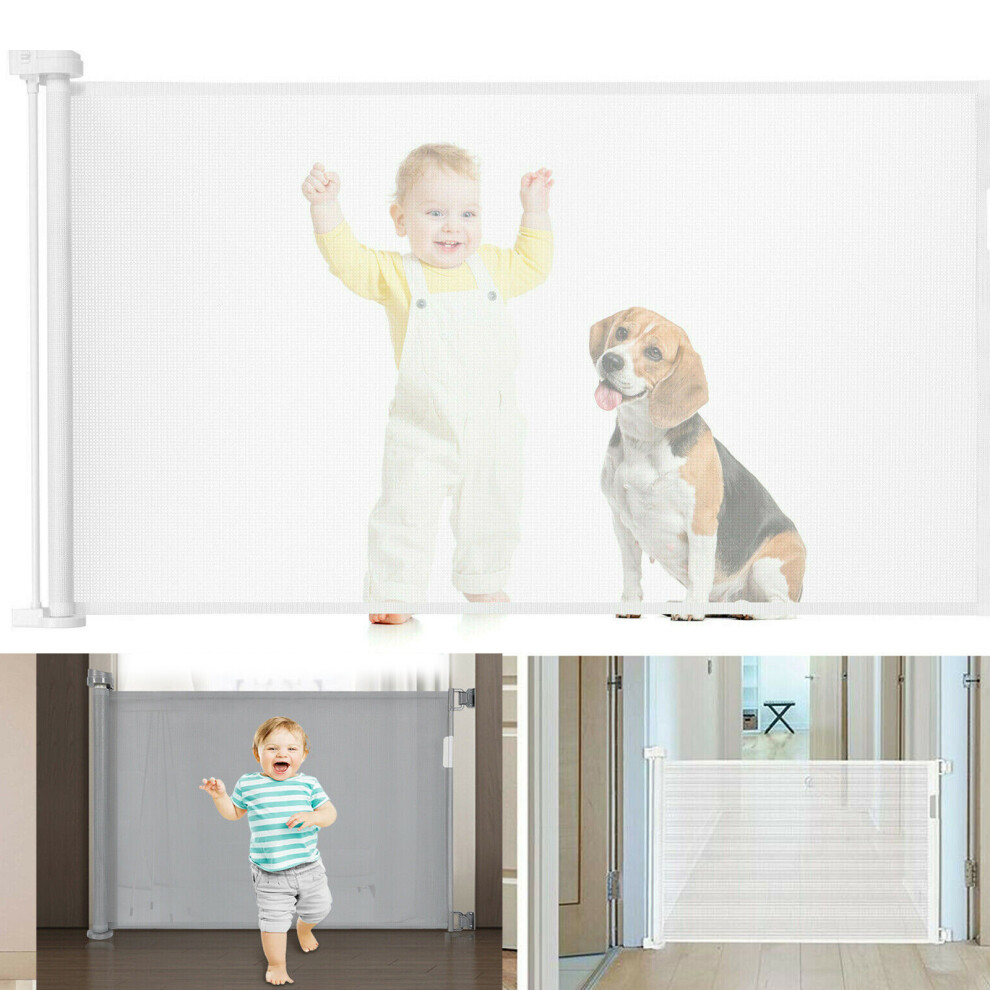 (White) Safety Baby Gate for Stairs and Doorways Mesh Retractable Gate for Babies Pets Flexible Dog Barrier for Indoor Outdoor Kitchen