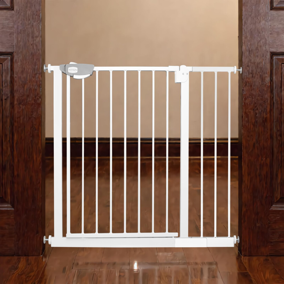 White Safety Gate For Baby Stairs Doorway 76-82cm Wide Pressure Fit Easy Install