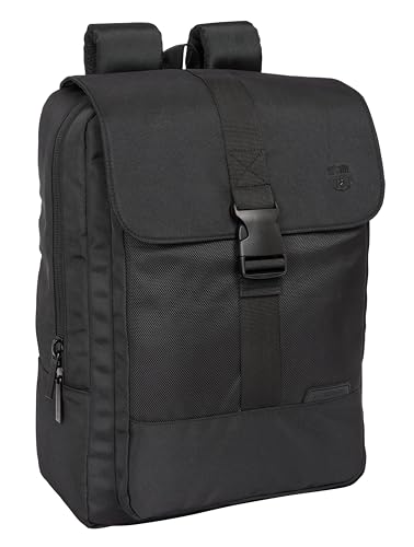 F.C. BARCELONA PREMIUM – Laptop Backpack 13.3 Inch and USB with Flap, Ideal for Young People of Different Ages, Comfortable and Versatile, Quality and Resistance, 29 x 12 x 39 cm, Black, Black/White,