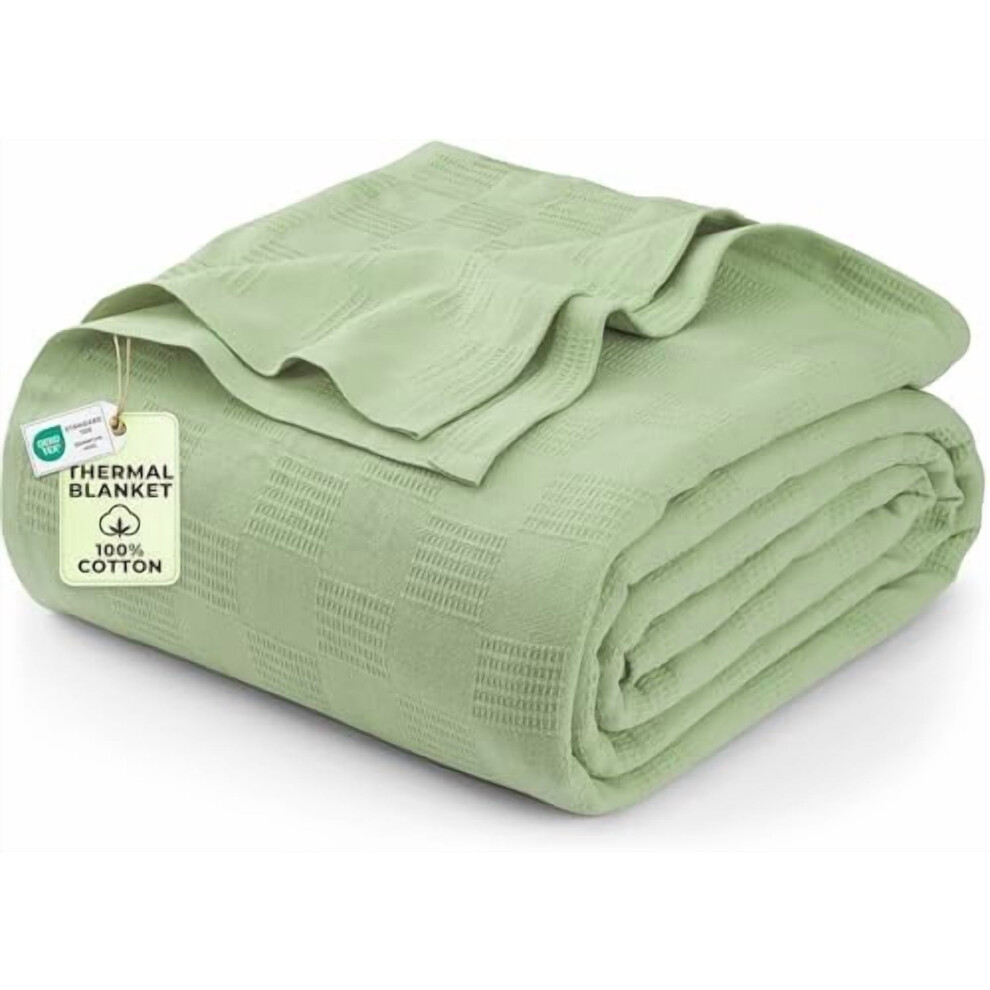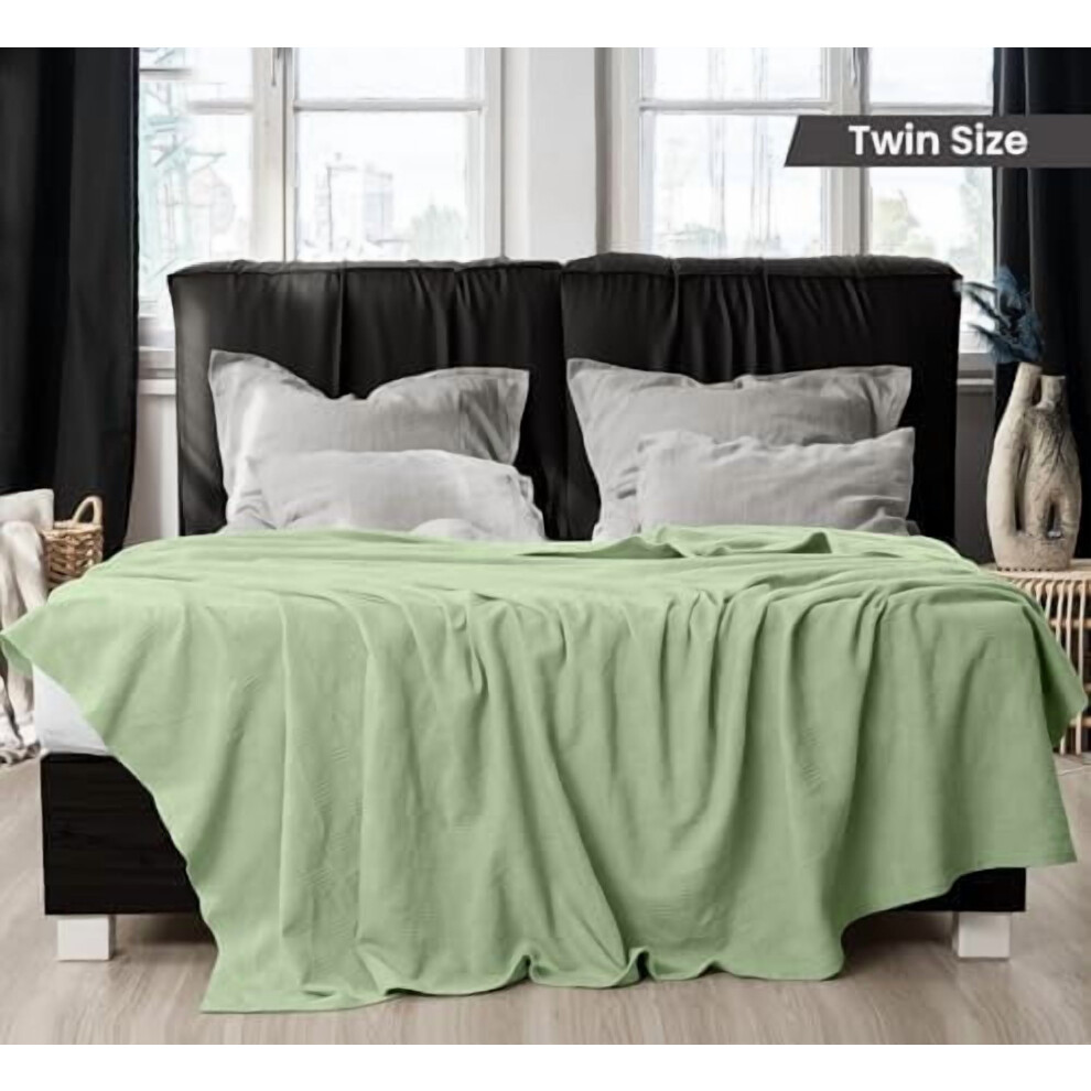 Sage Green 100% Cotton Blanket [Twin Size - 90x72 Inch] 350GSM Lightweight, Soft and Breathable Thermal Blanket for All Seasons