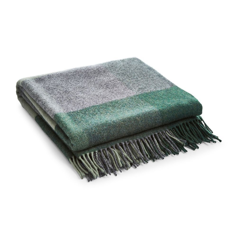 Liddell Large Super Soft Lambswool Bistro Sage Check Green Blanket, 150 x 175cm