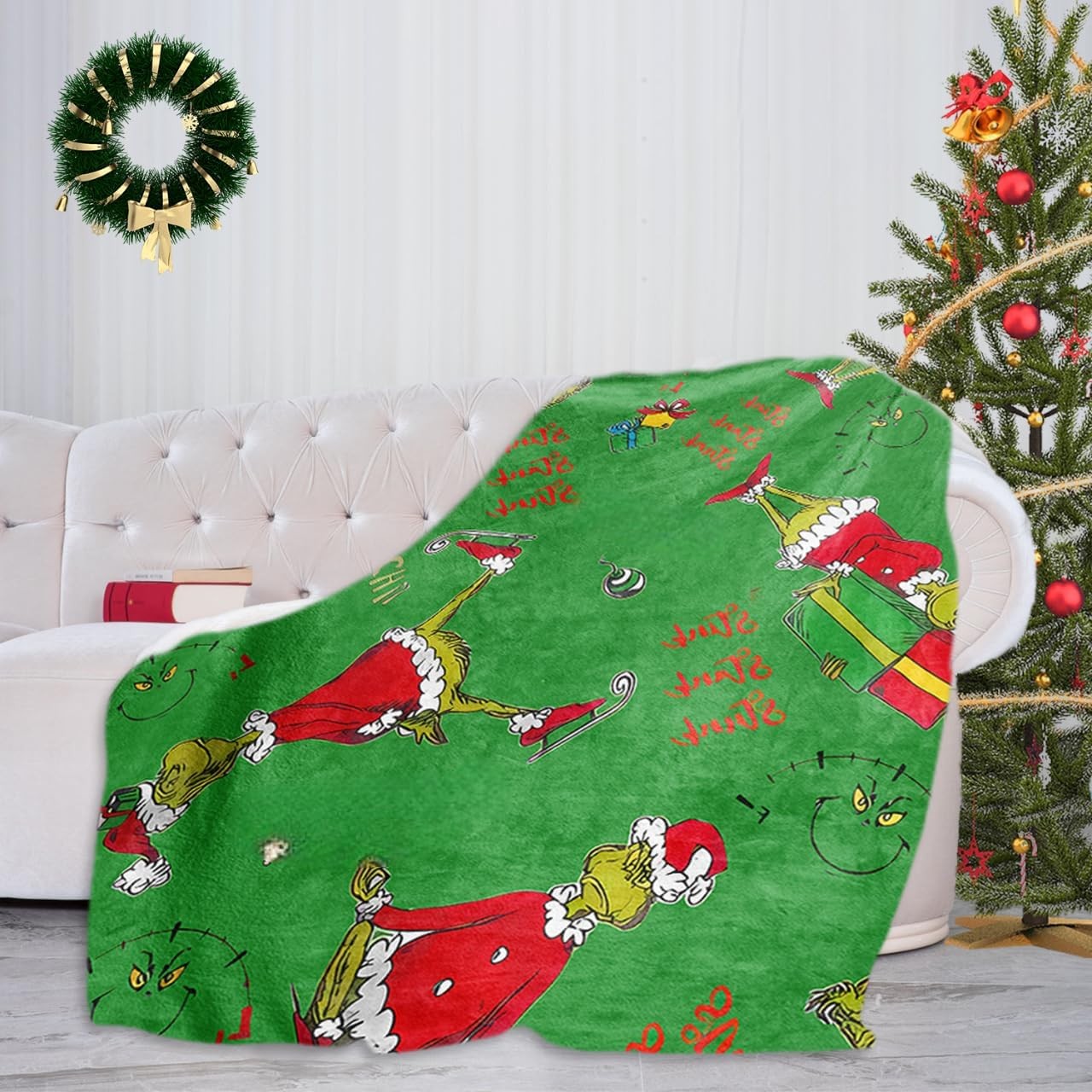 SereneSage Christmas Green Cartoon Blanket, 60"X40" Super Soft Elf