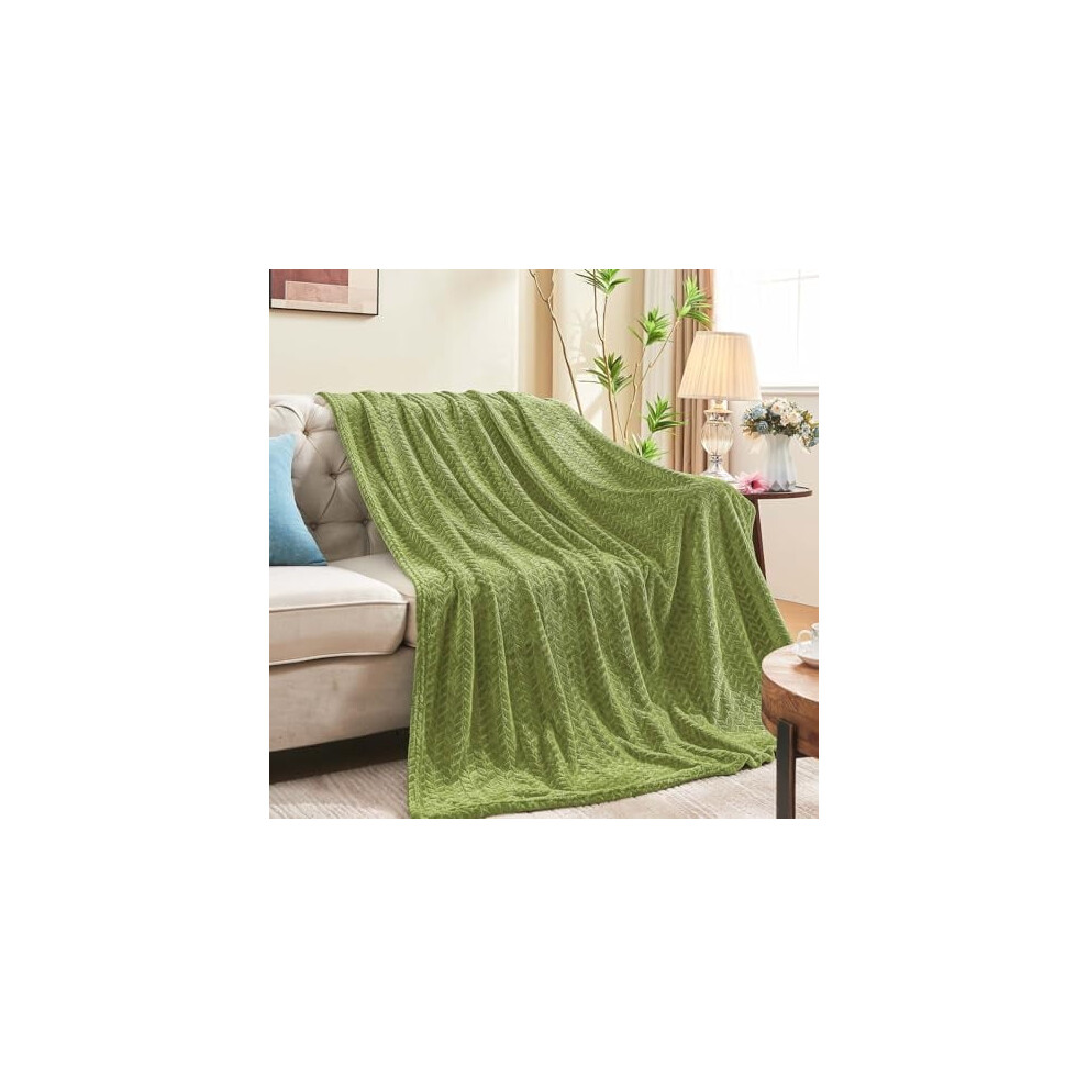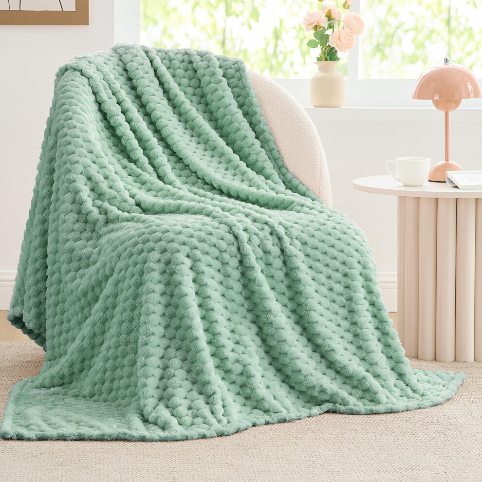 BEDELITE Fleece Throw Blanket for Couch & Bed - 3D Jacquard Decorative Sage Green Blanket Super Soft and Cozy Warm Fuzzy Blanket All Seasons Suitable
