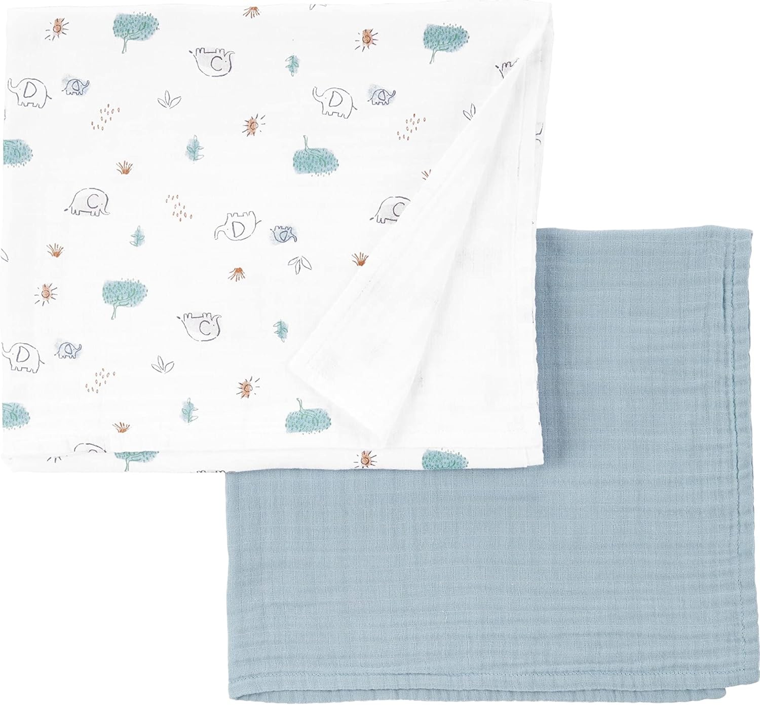 Simple Joys by Carter's Baby 2-Pack Cotton Gauze Blanket, Sage Green/White Elephant, One Size (Pack of 2)