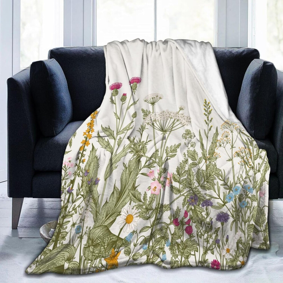 Sage Green Floral Herb Blanket, Soft Flannel Throw for Sofa/Bed â 60"x50", Cozy Lightweight Plush Home Decor Gift for Women & Girls