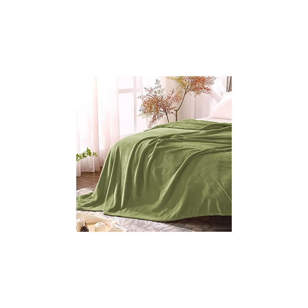-GentleSoft Sage Green Fleece Throw Blanket - 300GSM Soft Lightweight Plush Cozy Blankets for Bed, Sofa, Couch, Travel, Camping